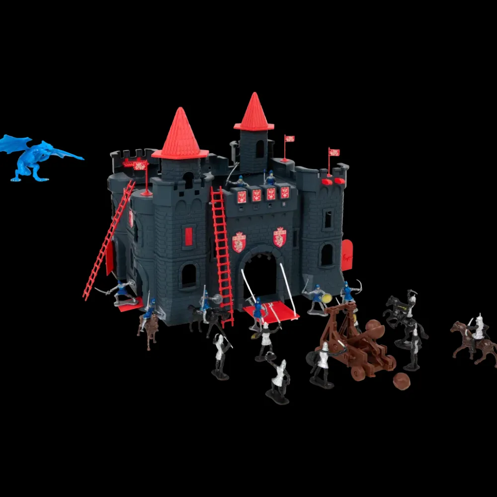 - Set bevat: een kasteel, 4 vlaggen, 2 ladders, 12 soldaten, 4 ridders, een steenwerpkatapult en een draak